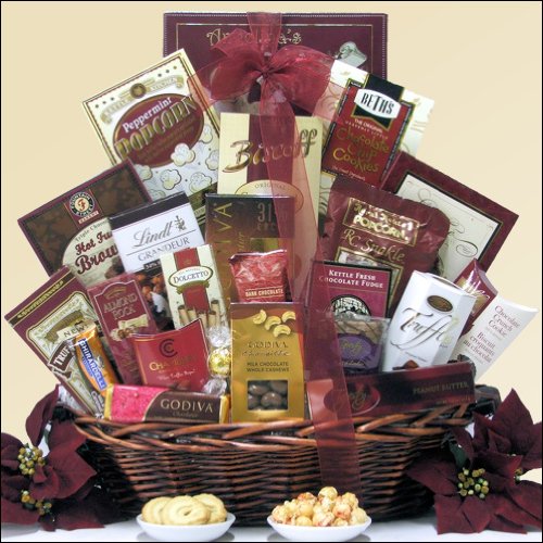 - Features premium chocolates and confections from Godiva, Harry & David, Lindt and Ghirardelli, as well as other delicious treats like sweet butter cookies, chocolate truffle cookies, milk chocolate smothered graham crackers, double raspberry chocolate cake, and so much more for the whole family or office to share!