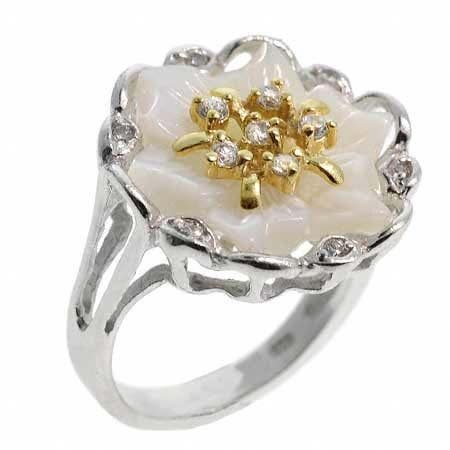 @@@ Product Details : Sterling Silver and Vermeil (24k Gold over Sterling Silver) Two Tone Simulated Diamond cz and Genuine Mother of Pearl Flower Ring