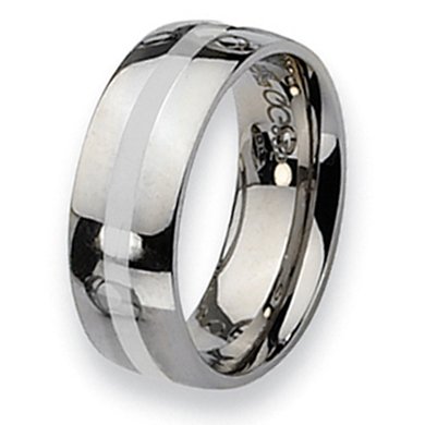 Buy Now : Chisel Sterling Silver Center Polished Stainless Steel Ring (8.0 mm) - Size 6.0