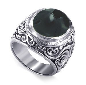 @@@ Sterling Silver Oval 18 x 20mm Black Onyx Gemstone Polished Finished 8mm Floral Design Chunky Band Ring Size 10 - - Review by James N